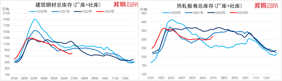 從鋼材庫存來看,6月國內(nèi)鋼材庫存繼續(xù)去化,庫存總量處于歷年相對低位。截至6月29日,找鋼網(wǎng)調(diào)研的建筑鋼材庫存總量(鋼廠庫存+社會庫存)為790.37萬噸,月環(huán)比下降85.43萬噸,環(huán)比降幅10%;熱軋板卷庫存總量(鋼廠庫存+社會庫存)為318.98萬噸,月環(huán)比上升21.85萬噸,環(huán)比增幅7%。7月份來看,由于目前鋼材庫存已經(jīng)處于相對低位,隨著市場情緒繼續(xù)好轉(zhuǎn),部分企業(yè)階段性補(bǔ)庫,疊加部分鋼廠復(fù)產(chǎn),鋼材庫存去化或繼續(xù)放緩。
