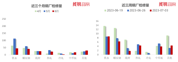 從具體數(shù)據(jù)來看,6月份檢修鋼廠數(shù)量較5月份繼續(xù)下降,并且同比來看目前鋼廠減產(chǎn)力度明顯小于去年同期,表明當(dāng)前鋼廠繼續(xù)積極復(fù)產(chǎn)。
